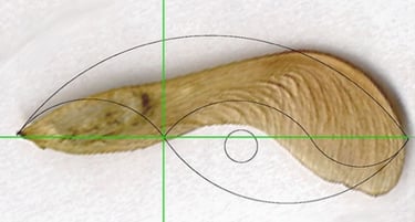 Limits, like the golden ratio, are scaffolding for expansion. My mom is tuned to the golden ratio, also known as the Divine Section. “Oh man, I see it everywhere. It's like 1.6, one eight is the rounded up, and yeah, it's a mathematical proportion system, the branches of trees, but you, it's a harmonic progression. So in this case, you just keep adding the first two numbers, so it would go 1, 2, 3, 5, 8, 13, and you just keep adding 'em. And it's like a branching system that you could see all through nature. Yeah. I have to draw you diagrams. It's hard to explain with words.” It amazes me how you can see this connections in many of her artworks, including this maple leaf seed.
